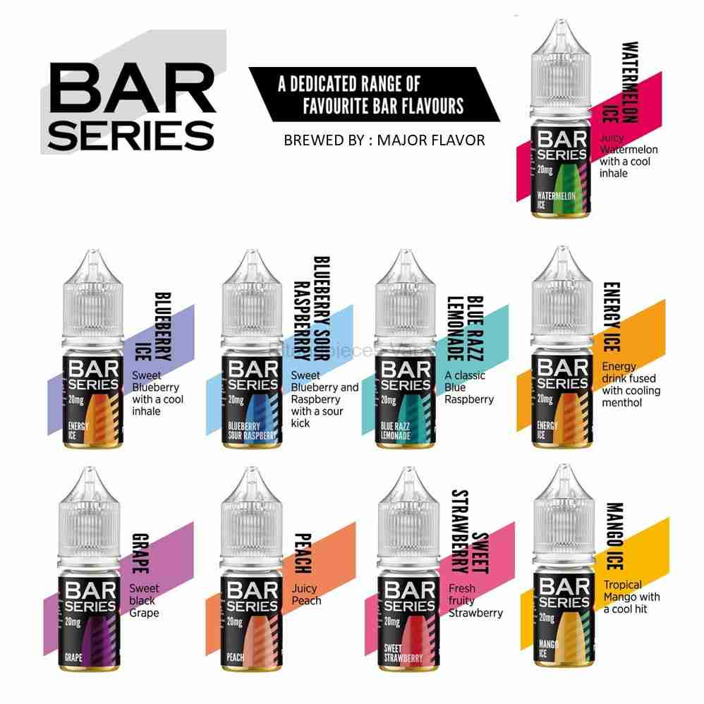 Bar Series is a brand-new e-liquid line dedicated to bringing the most popular disposable vape flavours in a convenient Nicotine Salt composition. Gone are the days of having to rely on disposable vapes to get the tastiest flavours, this vape juice can be used in your own vape starter kit. These nic salts are made in the UK with only the highest-quality ingredients, releasing nicotine to your bloodstream faster than standard e-liquid for a more intense and long-lasting effect.
