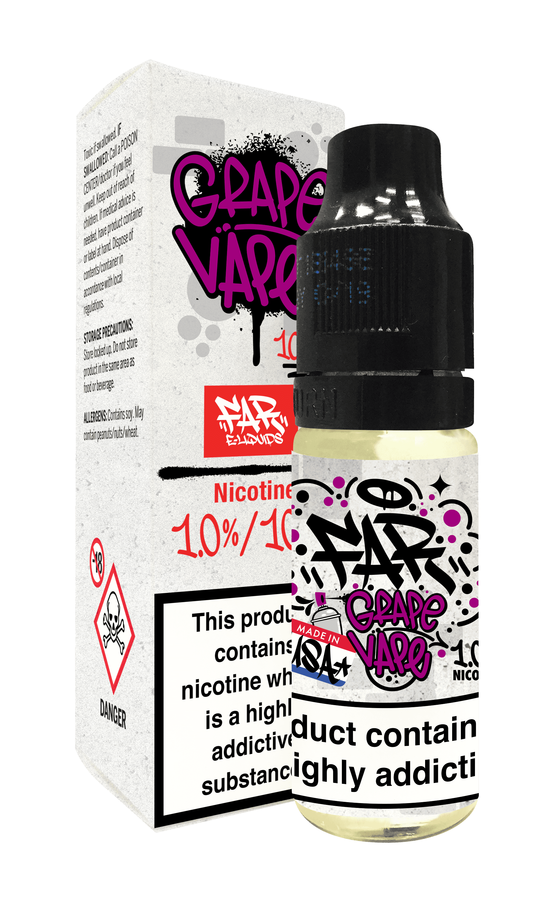 Grape Vape nicotine salt e-liquid by FAR is a sharp combination of sweet and sour notes. When vaped there is a dark and rich berry taste combined with a juicy grape flavour. To finish, lighter notes of red grape and candy exhale are present for a layered vape.
