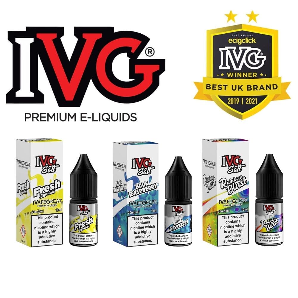 Available in a range of flavours, shop IVG nic salt e-liquids today.